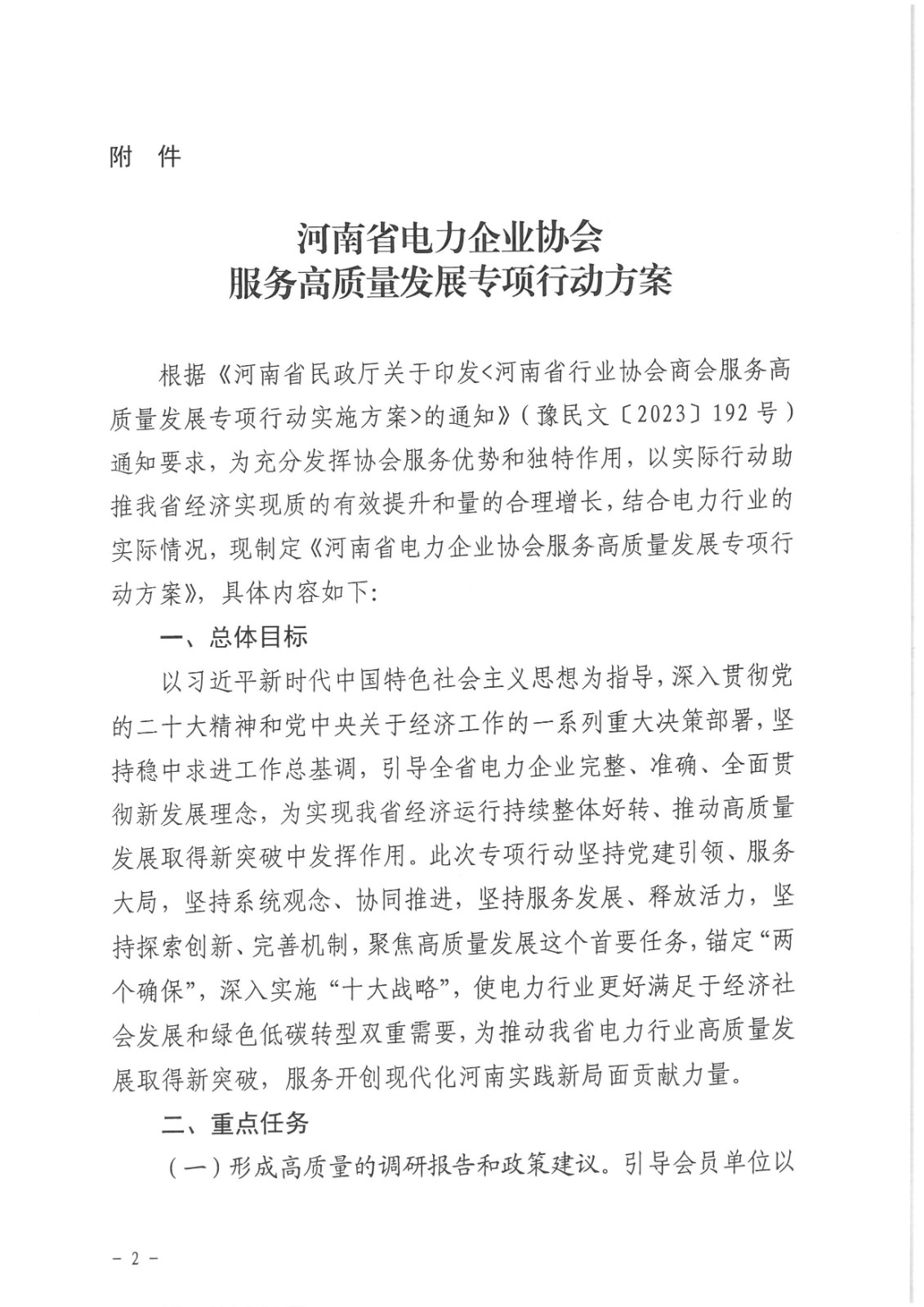 关于印发《河南省电力企业协会服务高质量发展专项行动方案》的通知