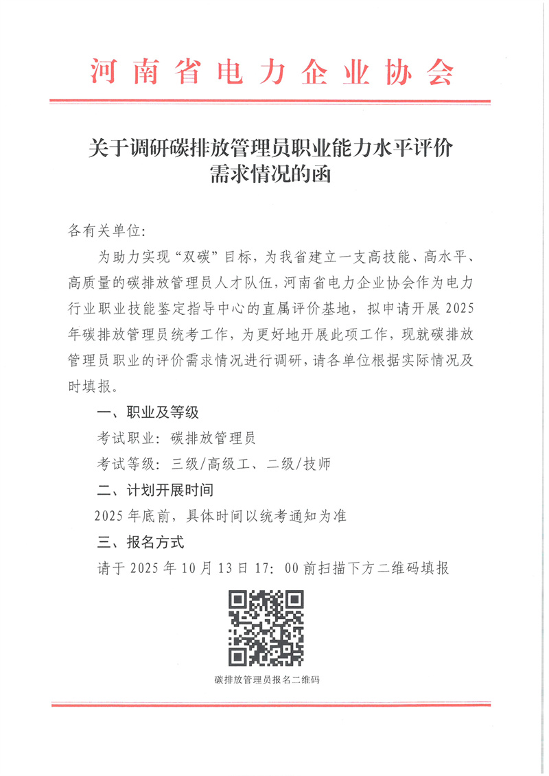关于调研碳排放管理员职业能力水平评价需求情况的函