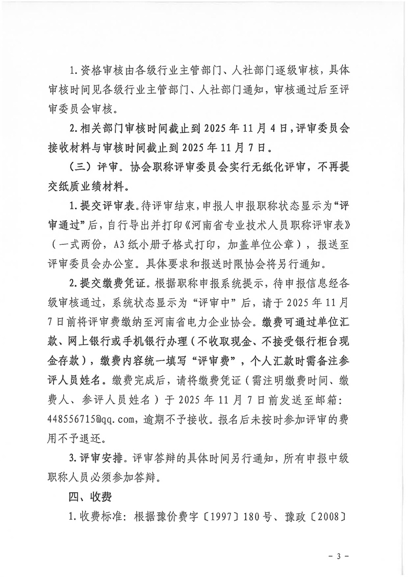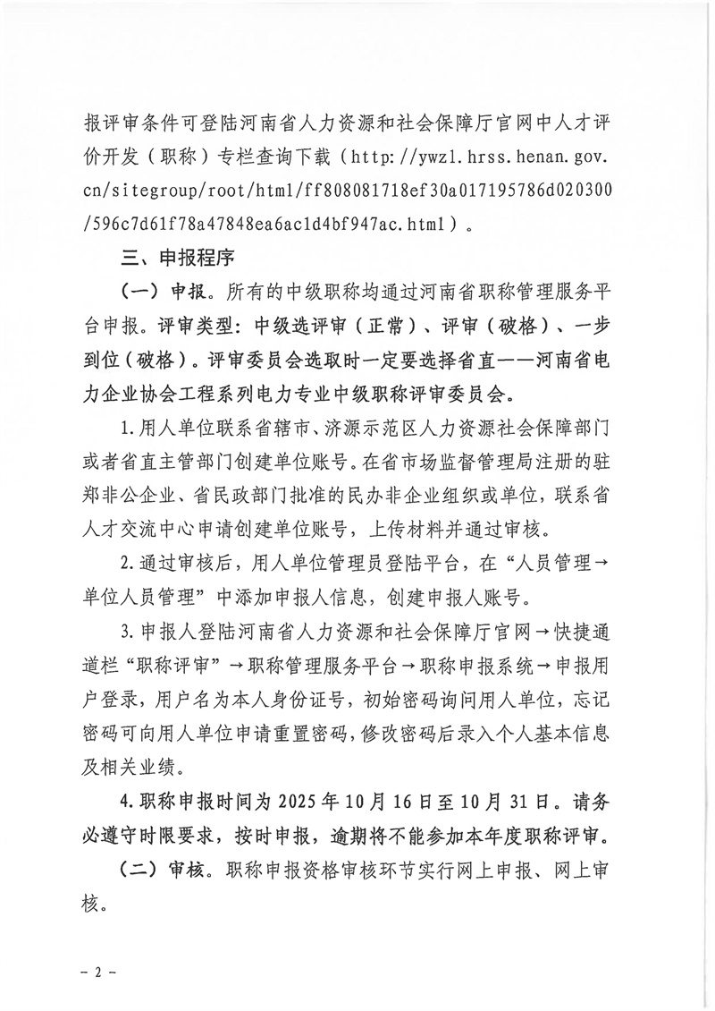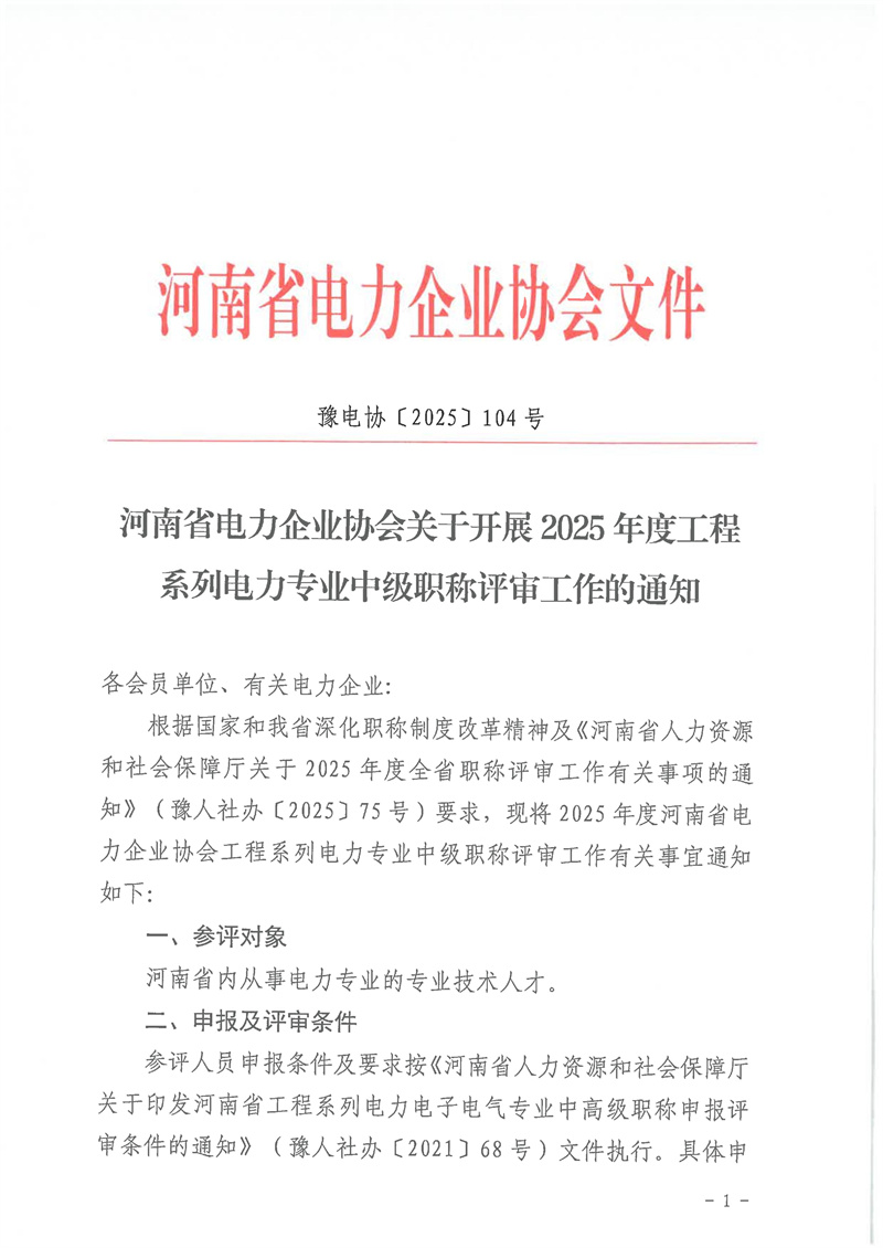 河南省电力企业协会关于开展2025年度工程系列电力专业中级职称评审工作的通知