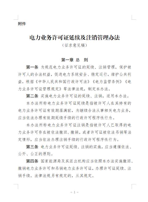 附件:电力业务许可证延续及注销管理办法(征求意见稿)