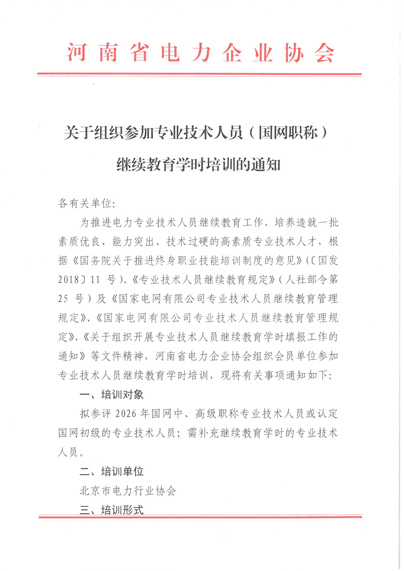 关于组织参加专业技术人员(国网职称)继续教育学时培训的通知