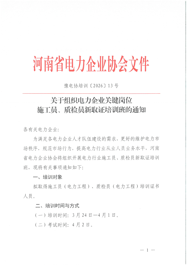 2026年3月24日-4月1日施工员、质检员(电力工程)新取证培训