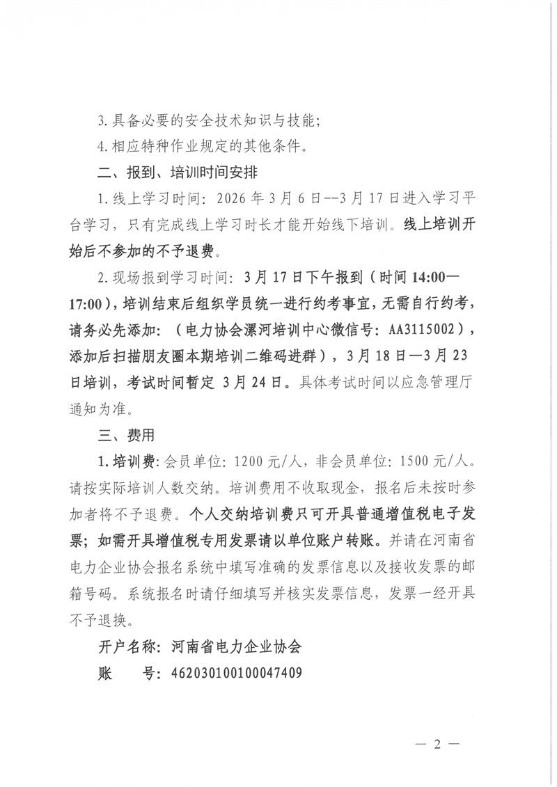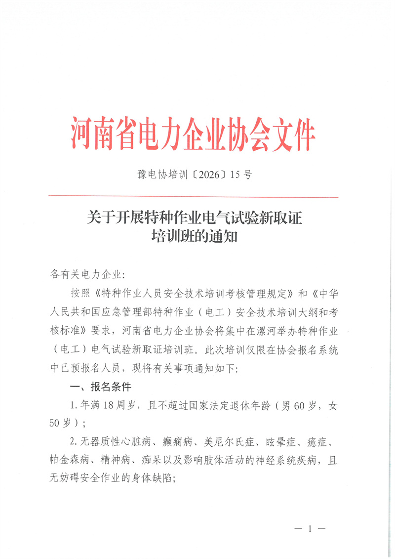 2026年3月6日--3月24日特种作业(电气试验)新取证培训通知