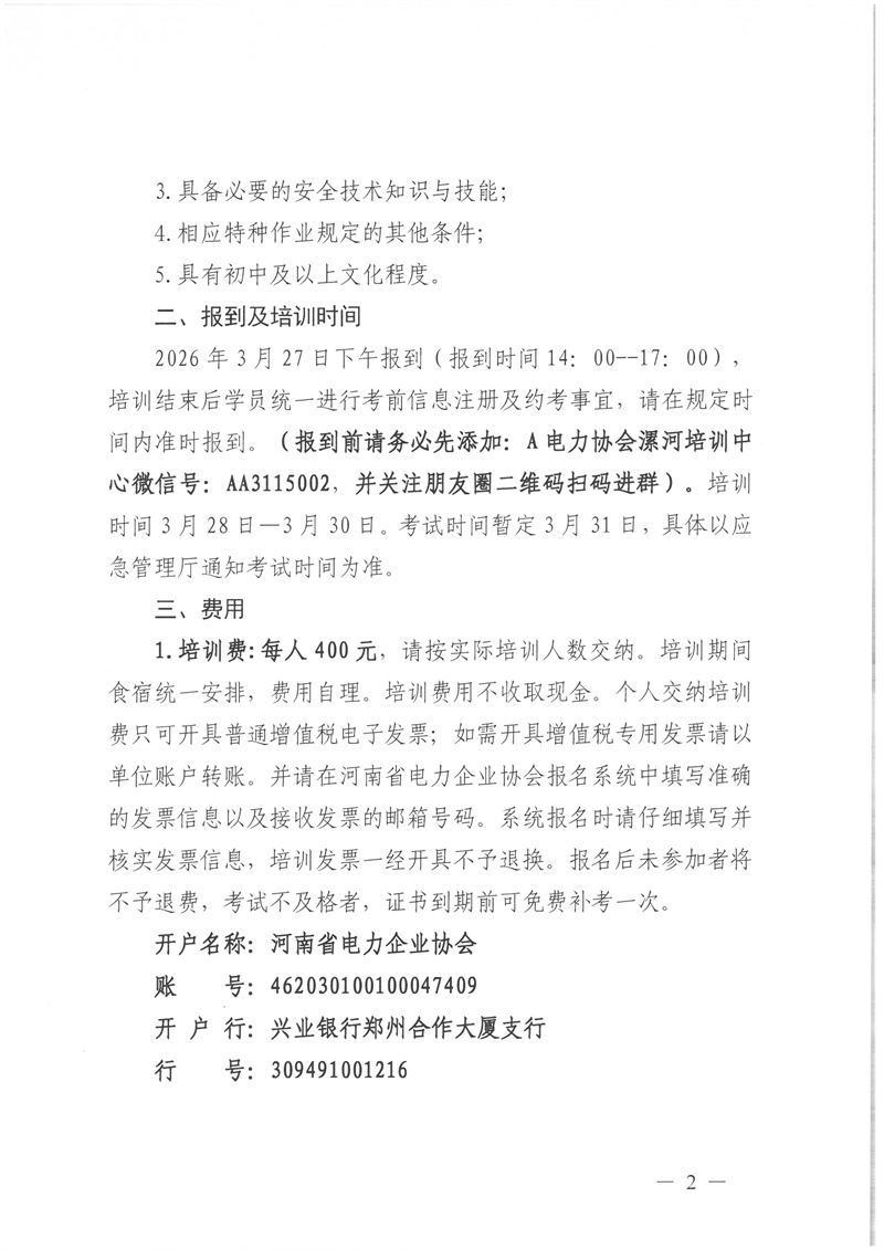 2026年3月27日--3月31日特种作业电气试验复审培训通知