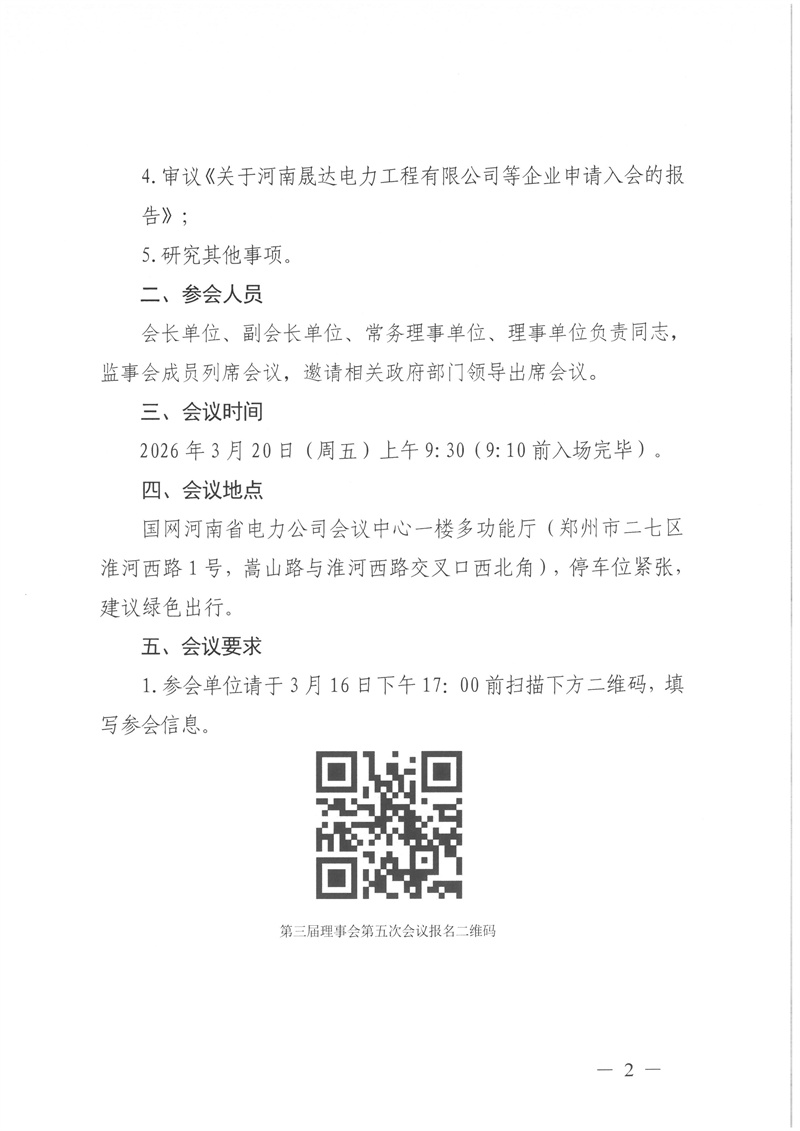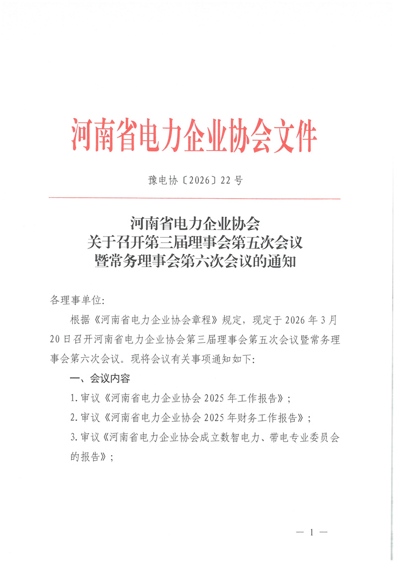 河南省电力企业协会关于召开第三届理事会第五次会议暨常务理事会第六次会议的通知