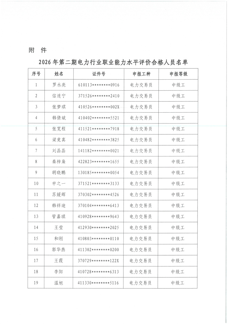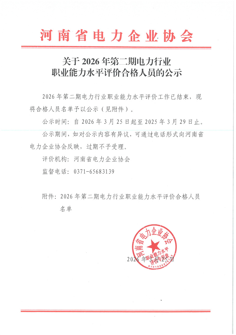 关于2026年第二期电力行业职业能力水平评价合格人员的公示