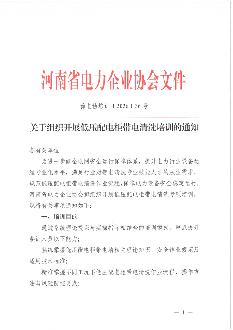 2026年4月27日-4月30日低压配电柜带电清洗培训的通知