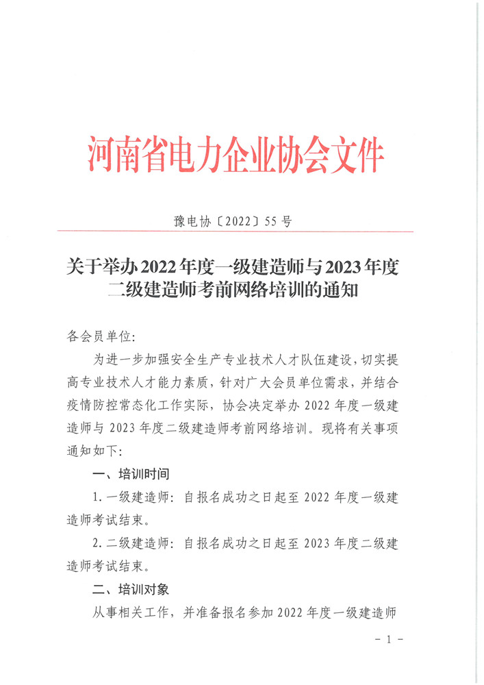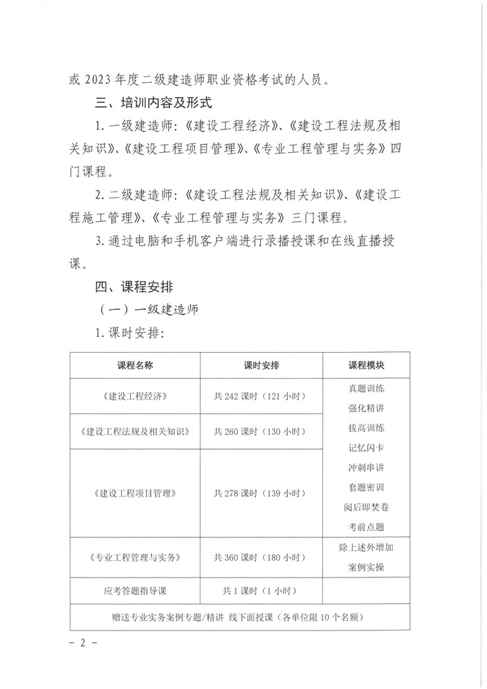 关于举办2022年度一级建造师与2023年度二级建造师考前网络培训的通知
