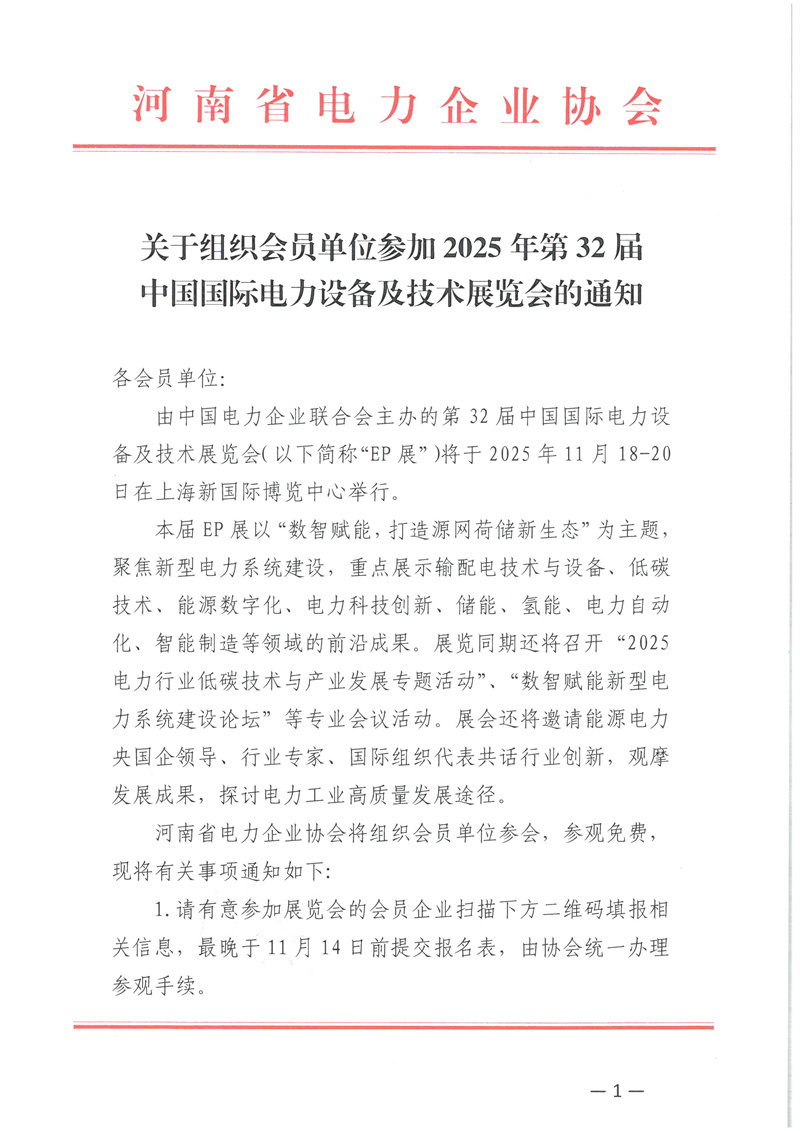 关于组织会员单位参加2025年第32届中国国际电力设备及技术展览会的通知