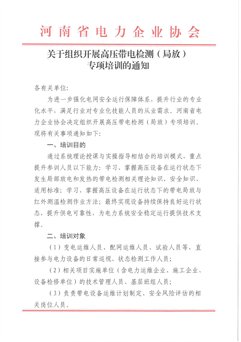 关于长期组织开展高压带电检测(局放)专项培训的通知