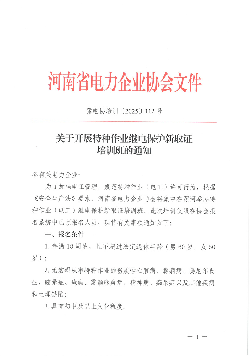 2025年12月5日--12月23日特种作业(继电保护)新取证培训通知