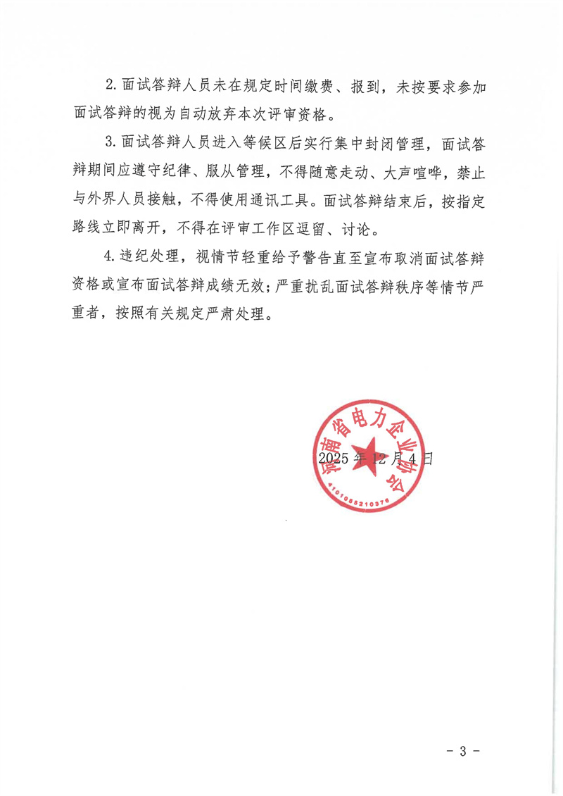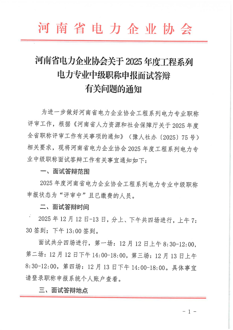 河南省电力企业协会关于2025年度工程系列电力专业中级职称申报面试答辩有关问题的通知
