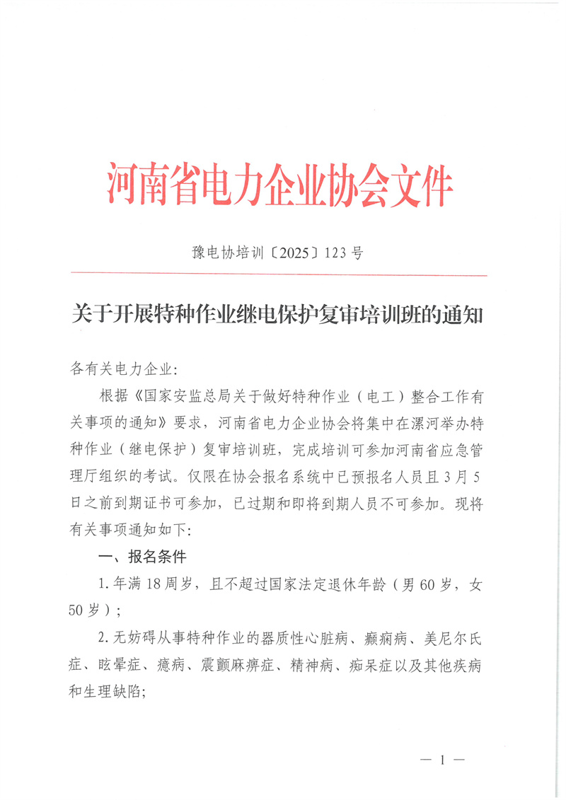 2026年1月9日--1月13日特种作业(继电保护)复审培训通知