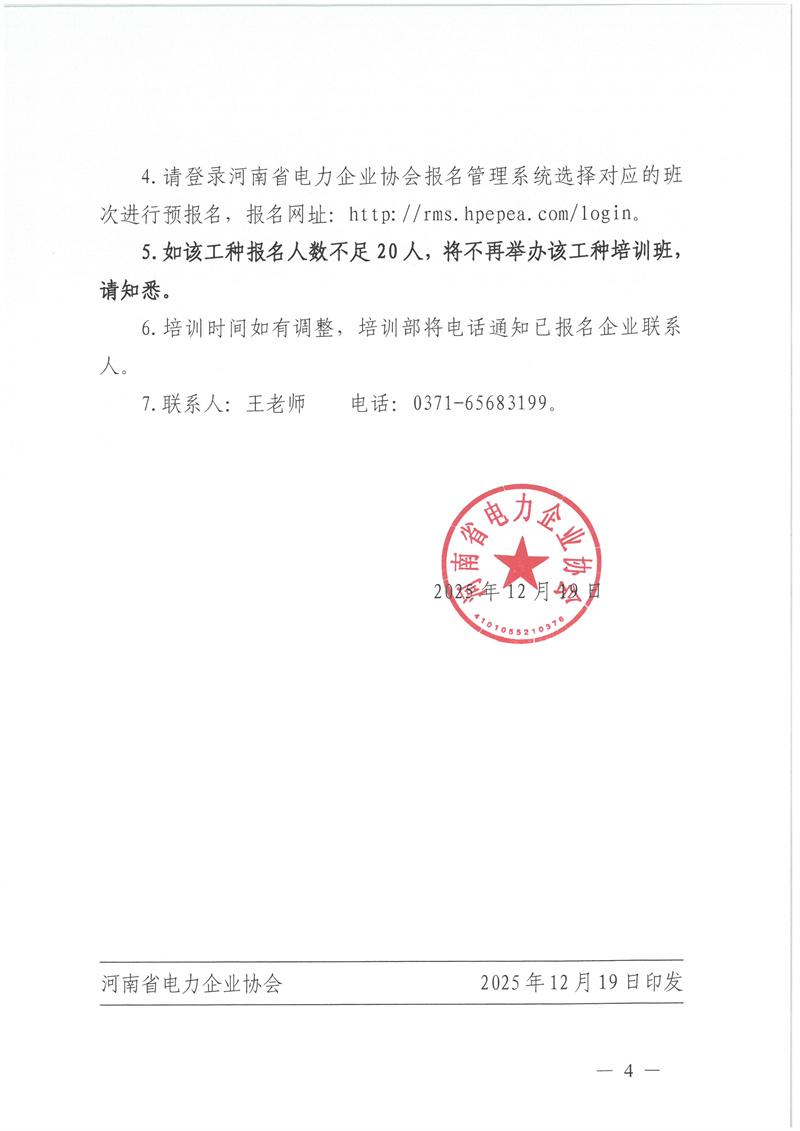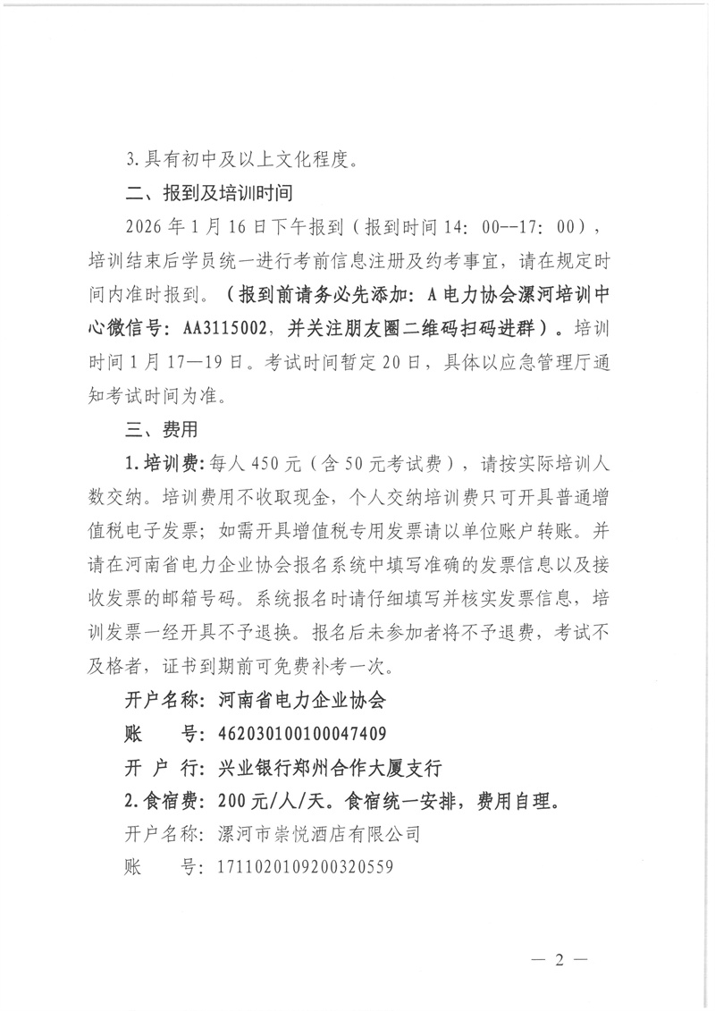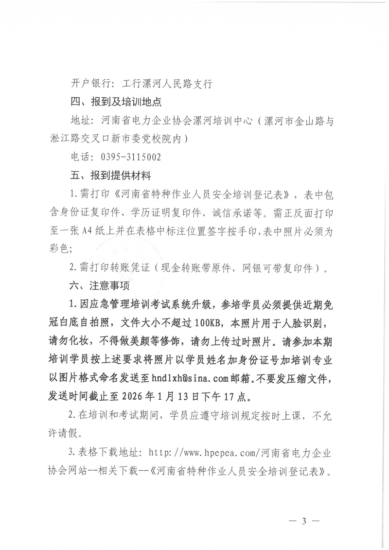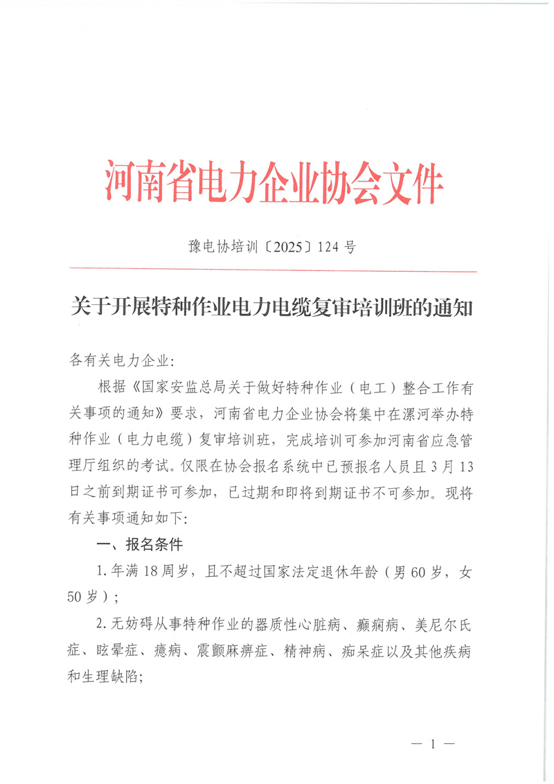 2026年1月16日--1月20日特种作业(电力电缆)复审培训通知