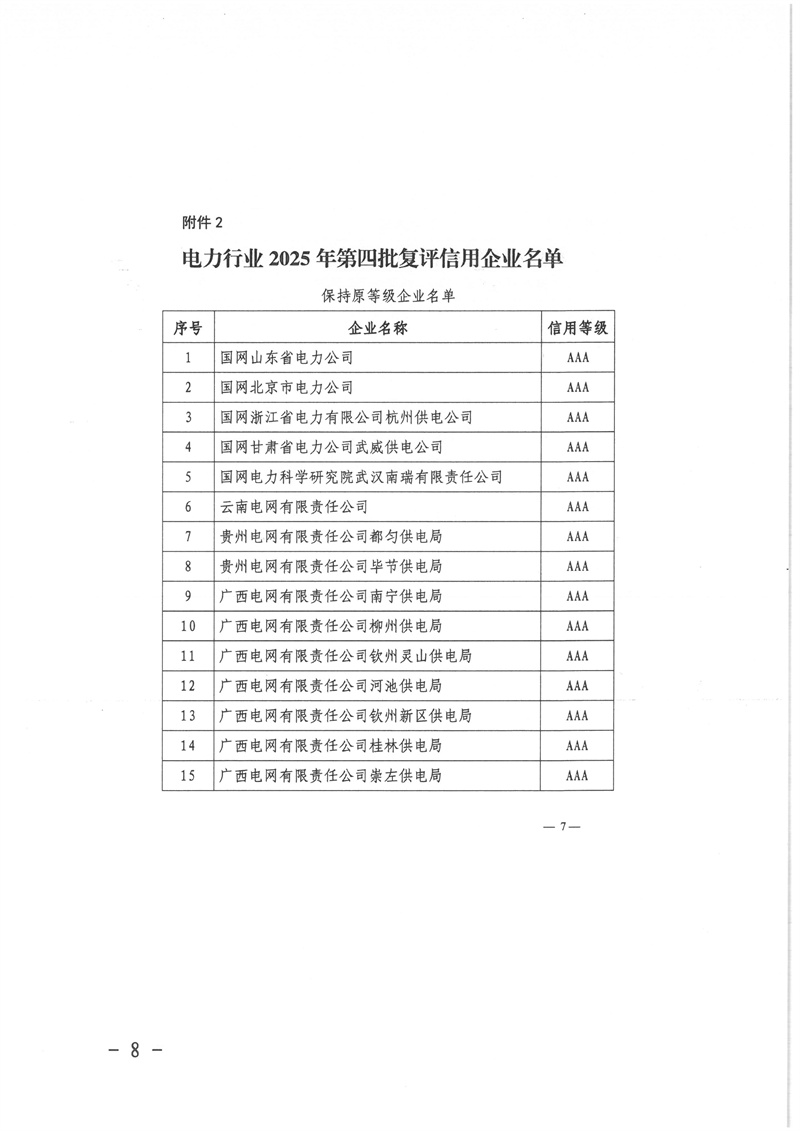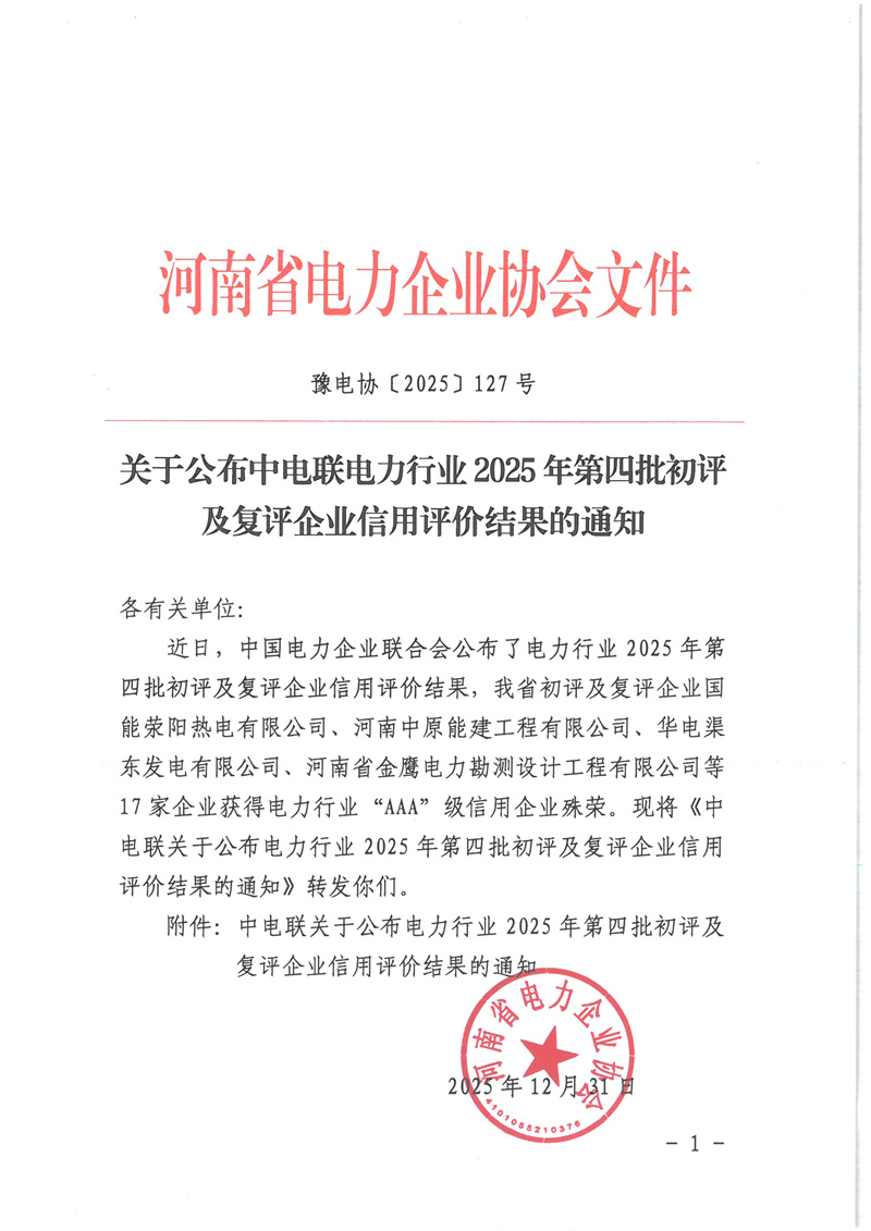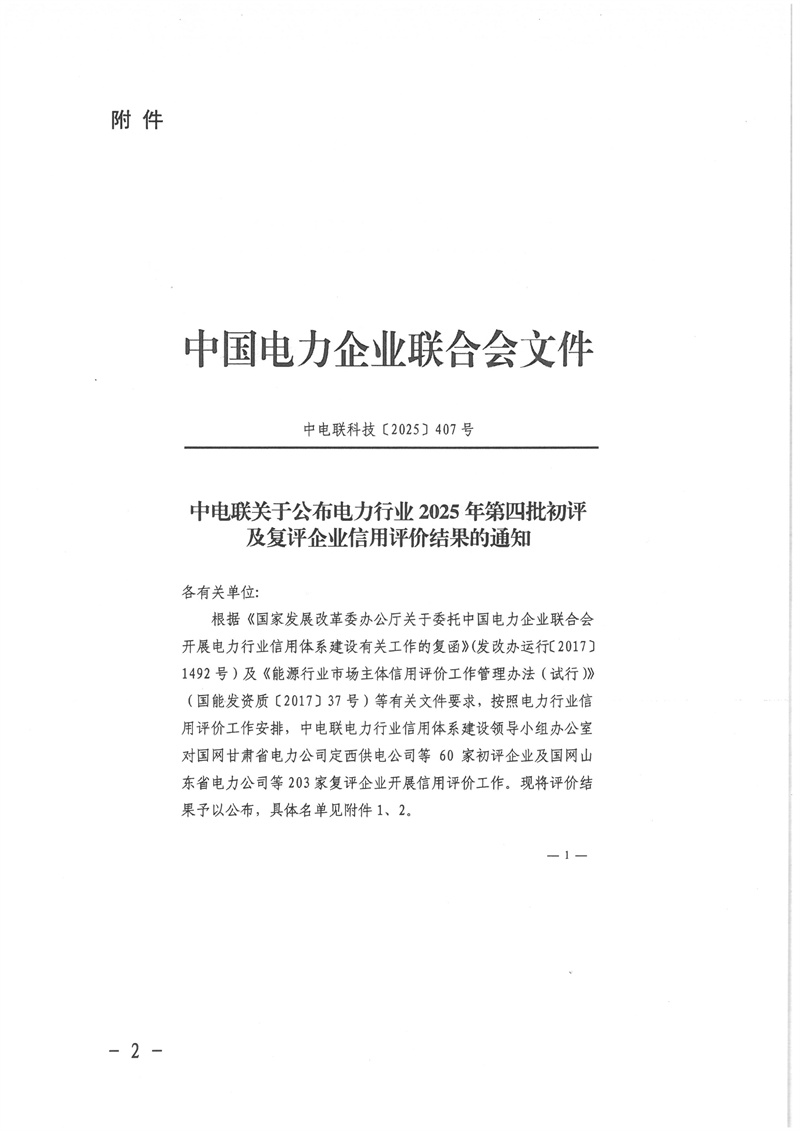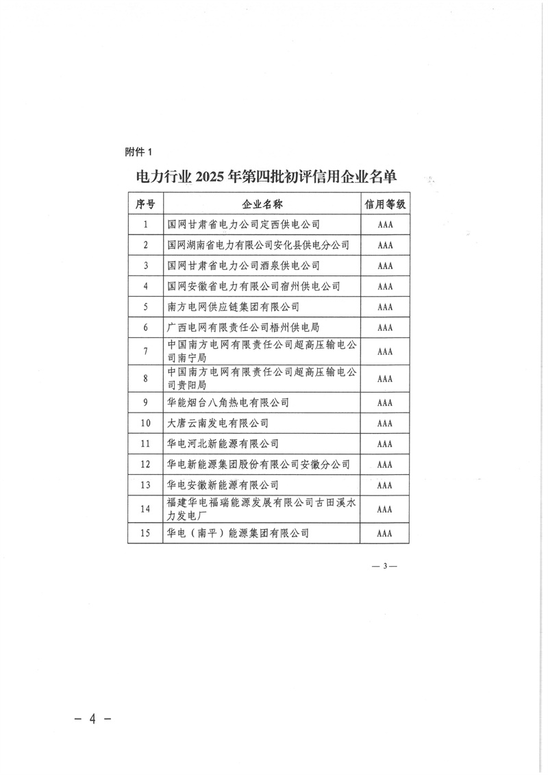 关于公布中电联电力行业 2025 年第四批初评及复评企业信用评价结果的通知