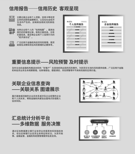 百行征信通过统筹推进信贷数据共享和替代数据源拓展,征信系统规模继续扩大,主要提供信用报告、关注名单、反欺诈和核验类等产品,产品种类不断丰富,查询量不断增长。2024年5月23日,百行征信发布六周年业绩显示,截至2024年4月末,百行征信系统收录信息主体6.9亿人,日调用量峰值突破1亿笔,个人征信产品累计调用量350亿笔[5]。