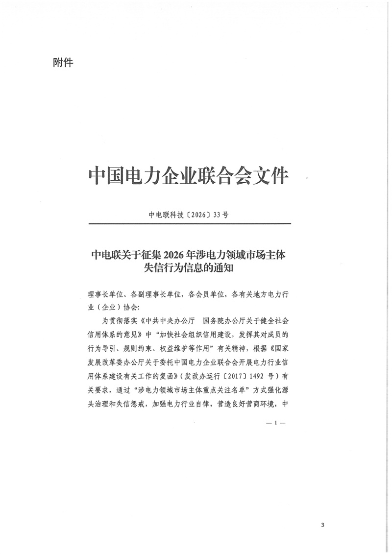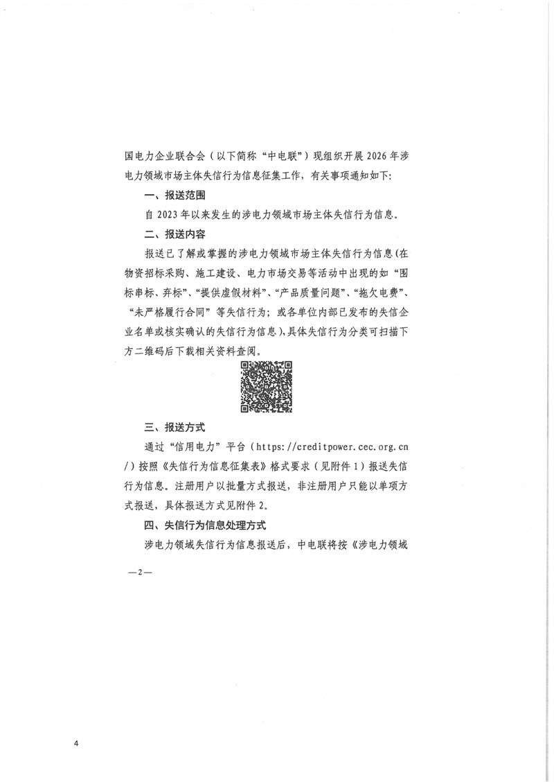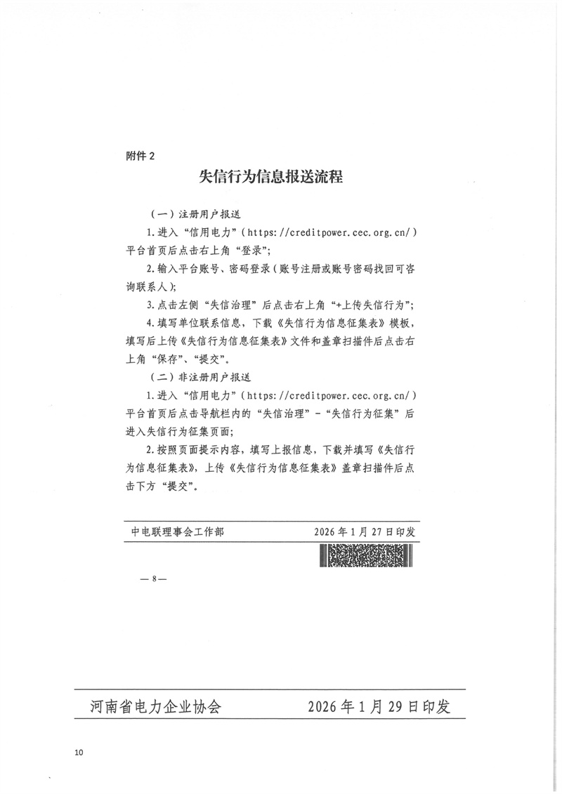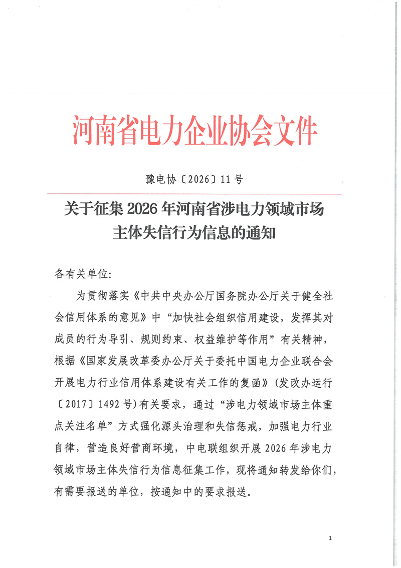关于征集2026年河南省涉电力领域市场主体失信行为信息的通知