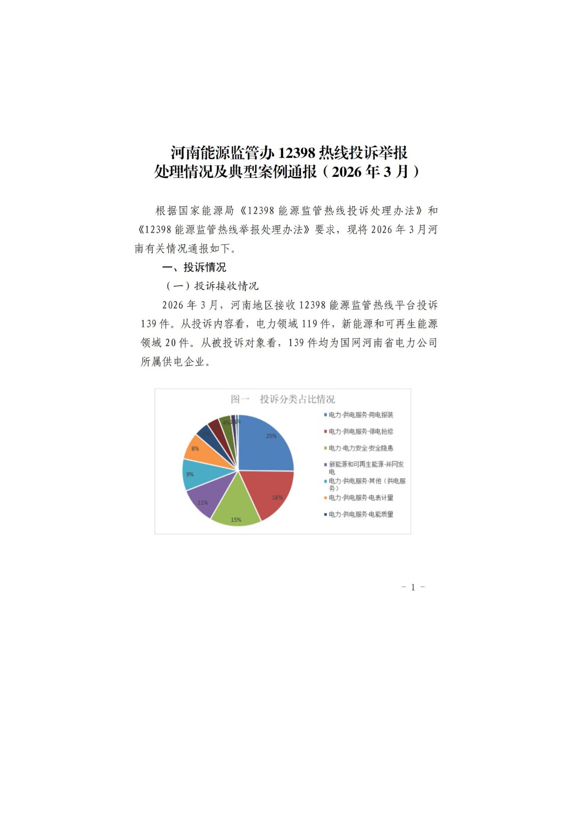 河南能源监管办12398热线投诉举报处理情况及典型案例通报(2026年3月)